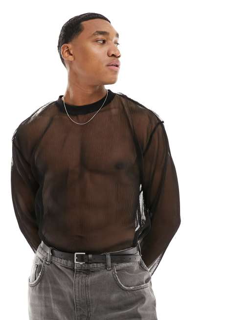 ASOS DESIGN relaxed long sleeve t-shirt in crinkle mesh