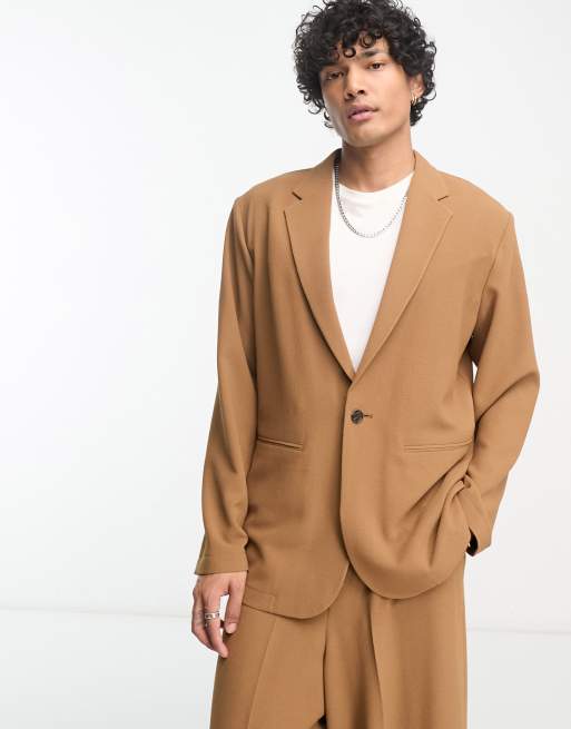 ASOS DESIGN relaxed oversized soft tailored suit jacket in tobacco crepe