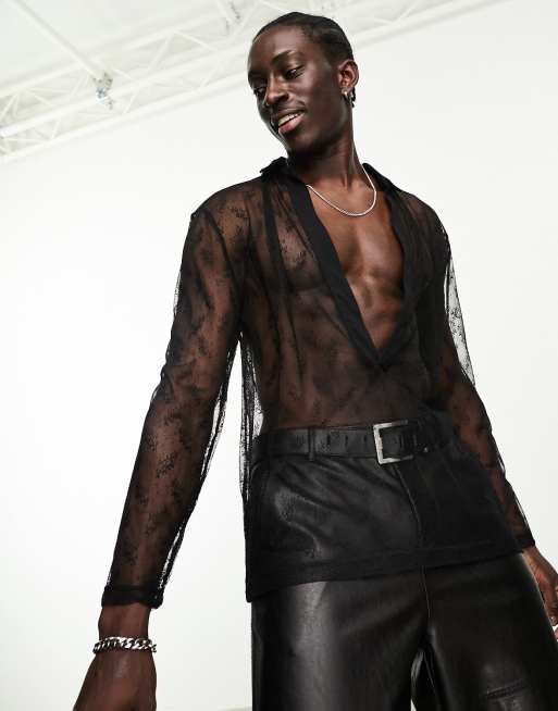 ASOS DESIGN relaxed polo shirt in sheer lace with deep v neck