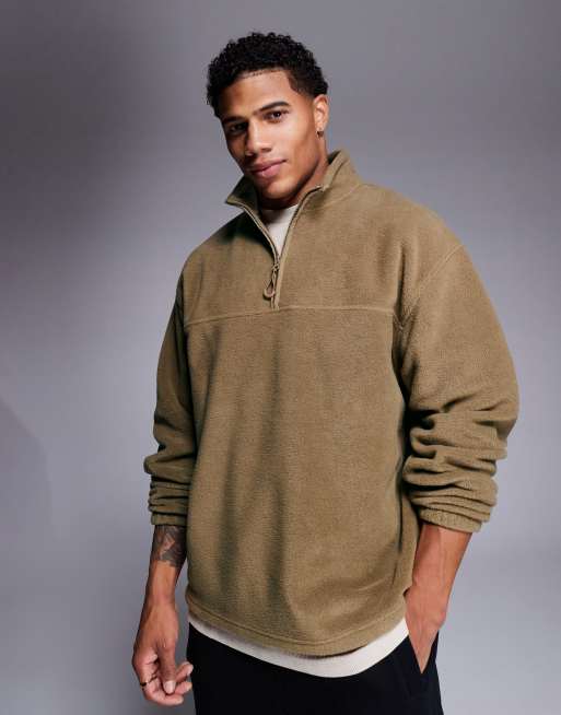 ASOS DESIGN relaxed quarter zip fleece sweatshirt in beige - BEIGE