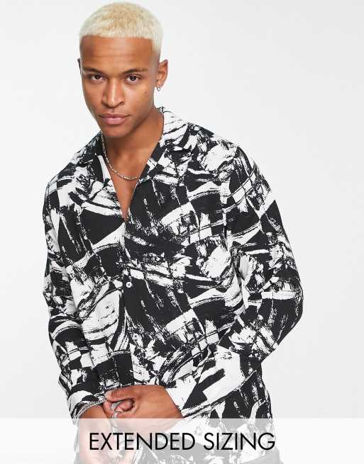 ASOS DESIGN relaxed revere shirt in black and white abstract print