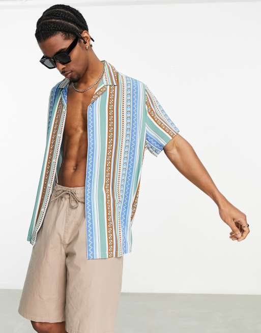 ASOS DESIGN relaxed revere shirt in blue aztec print