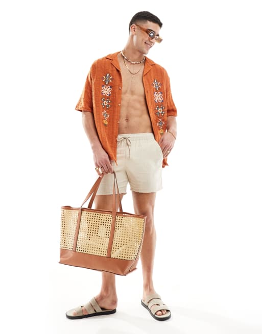 ASOS DESIGN relaxed revere shirt in rust with front cross stitch embroidery