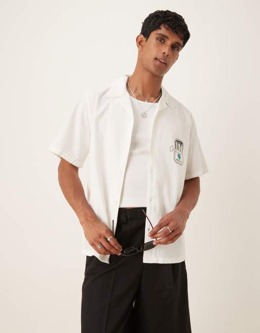 ASOS DESIGN relaxed revere shirt with chest print in white