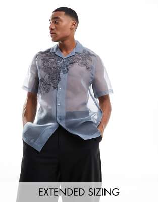 ASOS DESIGN relaxed revere shirt with floral embroidery in blue