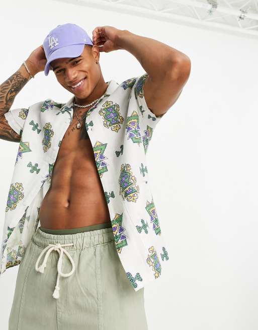 ASOS DESIGN relaxed revere textured shirt with aztec print