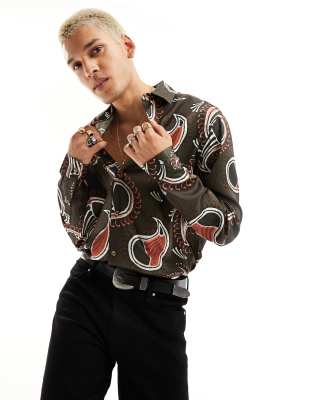 ASOS DESIGN relaxed satin shirt in brown paisley print
