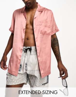ASOS DESIGN relaxed satin shirt in dusty pink with roll sleeves