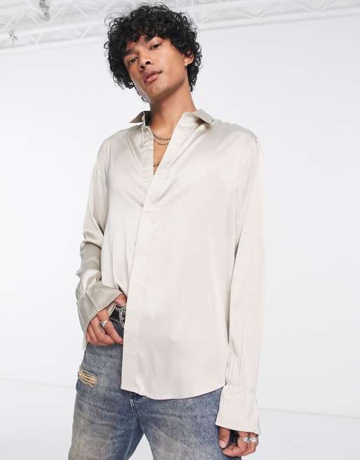 ASOS DESIGN relaxed satin shirt with fluted cuff in champagne