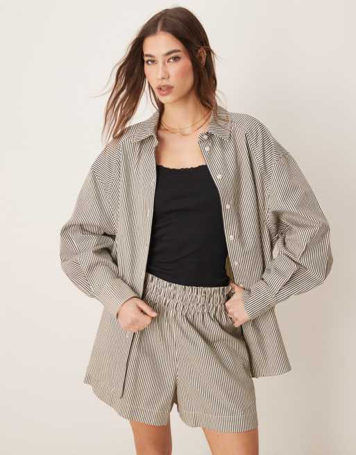 ASOS DESIGN relaxed shirt co-ord in mono stripe