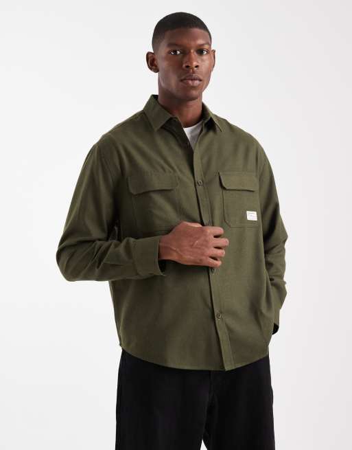 ASOS DESIGN relaxed shirt with badge detail in khaki