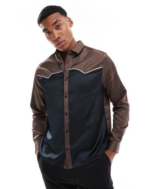 ASOS DESIGN relaxed shirt with cut and sew western details in black
