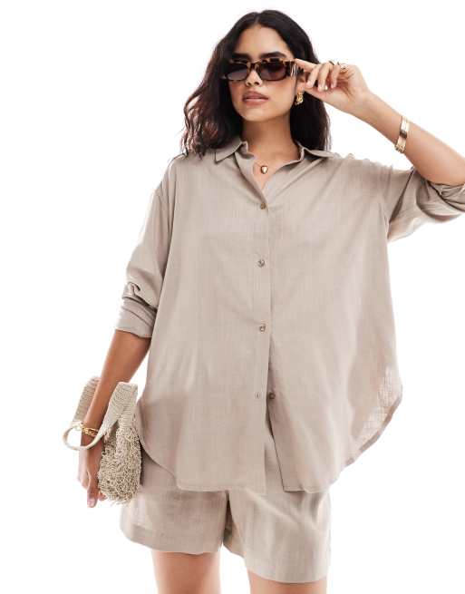 ASOS DESIGN relaxed shirt with linen in sand co-ord