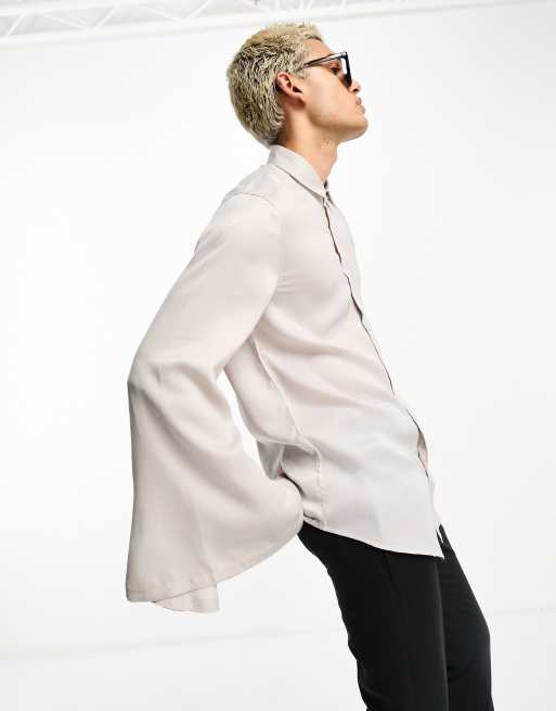 ASOS DESIGN relaxed shirt with oversized bell sleeve in lilac