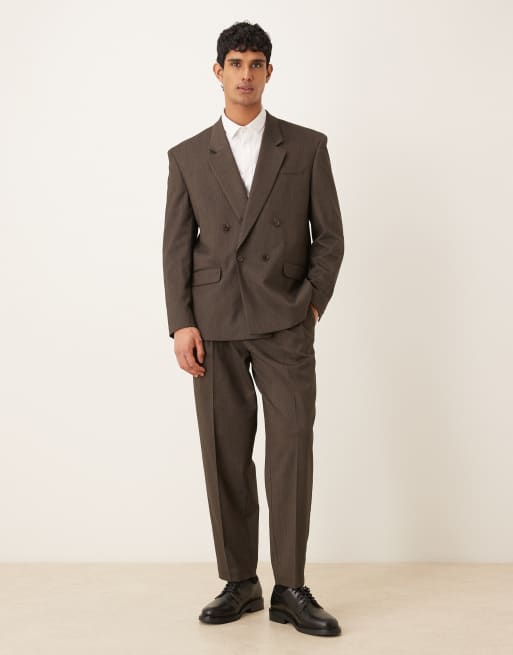 ASOS DESIGN relaxed square shoulder suit in brown subtle stripe