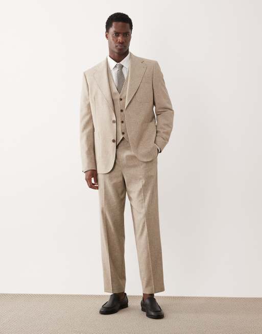 ASOS DESIGN relaxed suit trousers in stone linen blend