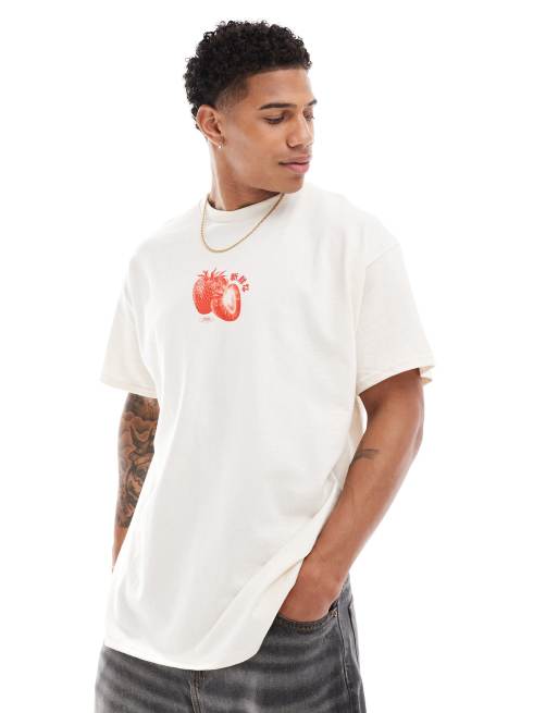 ASOS DESIGN relaxed t-shirt in beige with strawberry print