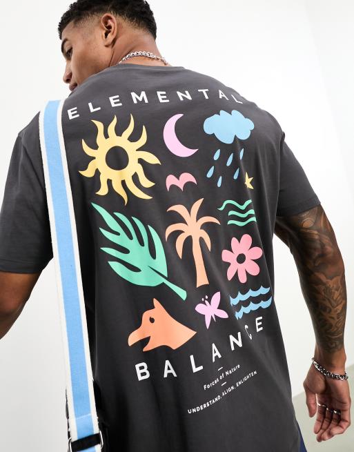 ASOS DESIGN relaxed t-shirt in dark grey with elements back print