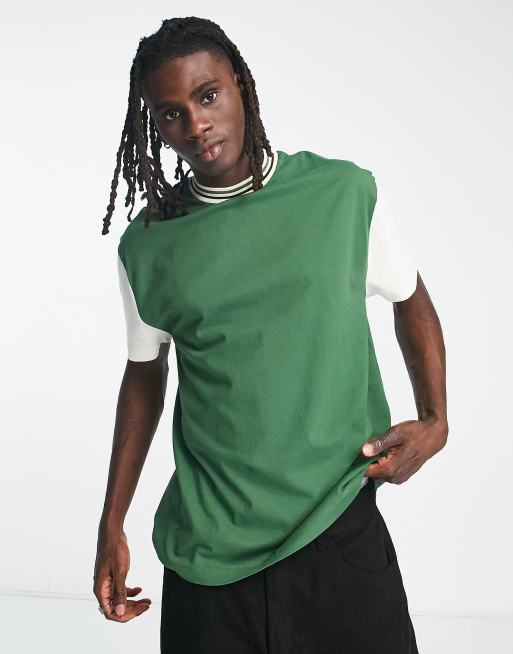 ASOS DESIGN relaxed t-shirt in green with contrast sleeves