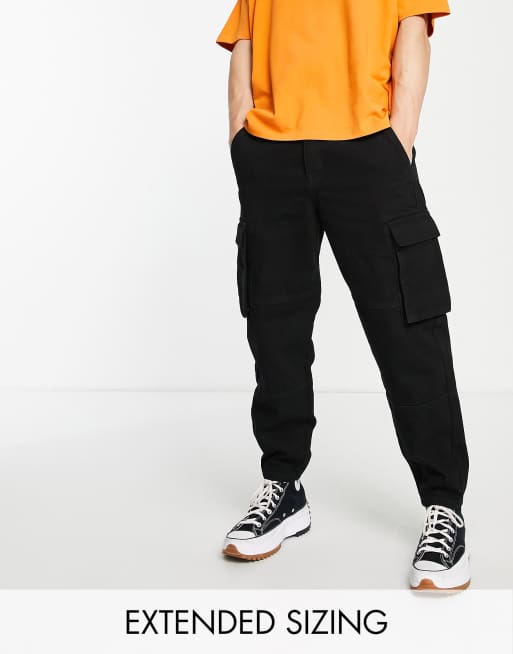 ASOS DESIGN relaxed tapered cargo jeans with carpenter detail in black