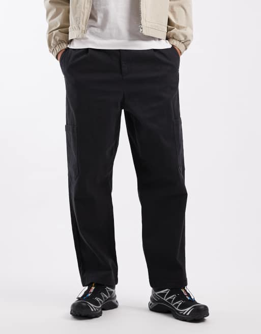 ASOS DESIGN relaxed tapered cargo trousers in black with pleats