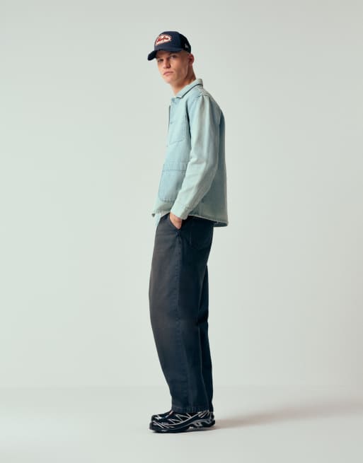 ASOS DESIGN relaxed tapered jeans in dark wash blue with pleats