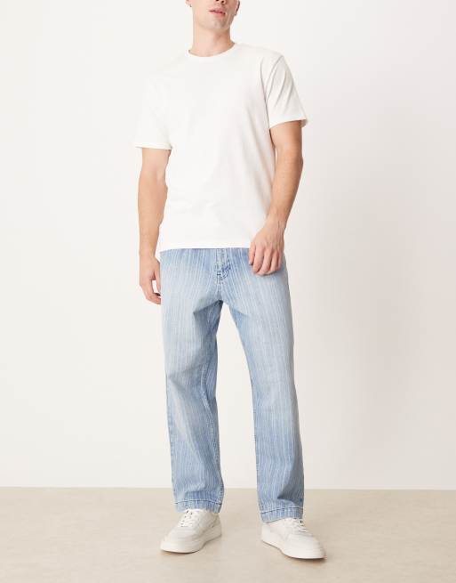 ASOS DESIGN relaxed tapered jeans in light wash blue with stripe print
