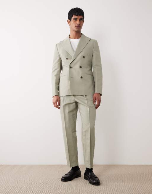 ASOS DESIGN relaxed tapered linen rich suit trousers in khaki