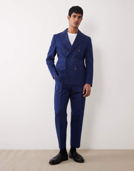 ASOS DESIGN relaxed tapered linen rich suit trousers in navy