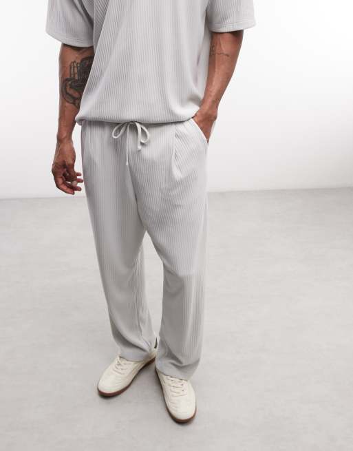 ASOS DESIGN relaxed tapered pleated plisse jogger in grey
