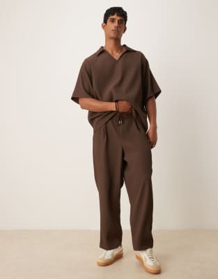 ASOS DESIGN relaxed tapered plisse jogger with pleats in brown