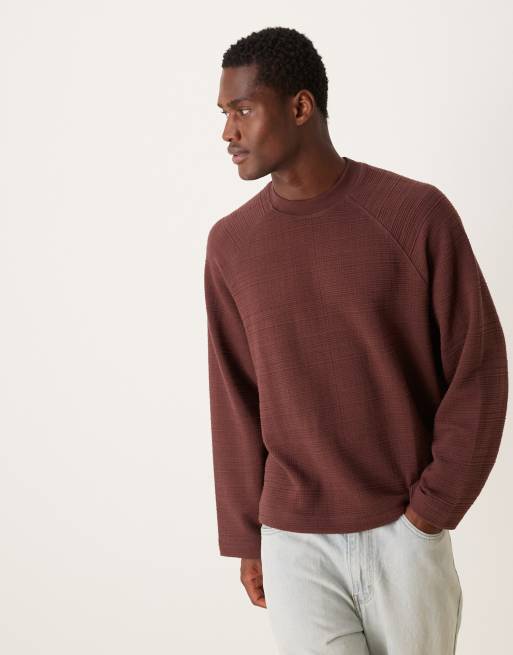 ASOS DESIGN relaxed textured boxy long sleeve raglan t-shirt in dark brown