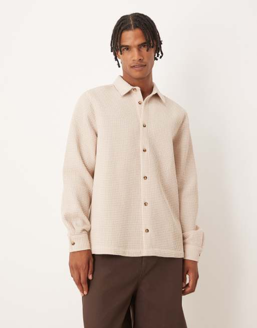 ASOS DESIGN relaxed textured shirt in neutral
