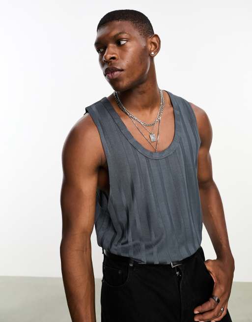 ASOS DESIGN relaxed vest in shiny grey rib with neck