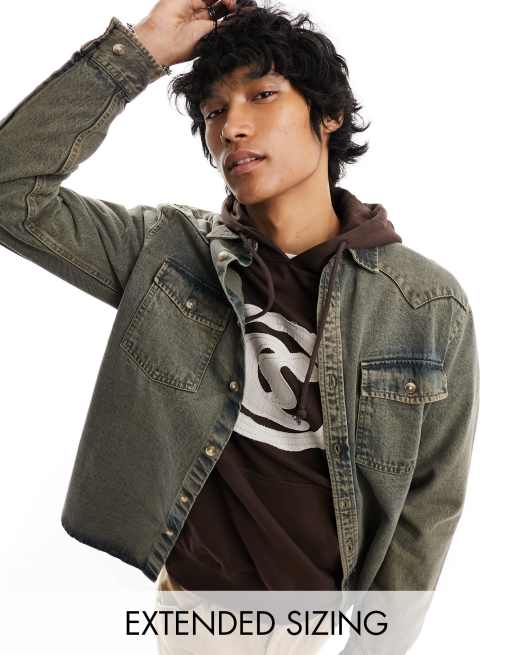 ASOS DESIGN relaxed western shirt in green dirty wash denim