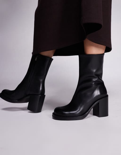 ASOS DESIGN Remy premium leather heeled ankle boots in black
