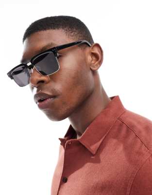 ASOS DESIGN retro sunglasses with black smoke lens and black and silver frame