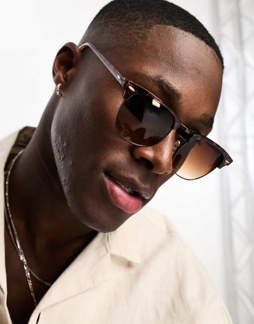 ASOS DESIGN retro sunglasses with brown gradient lens in tortoiseshell