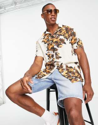ASOS DESIGN revere shirt with beige floral print