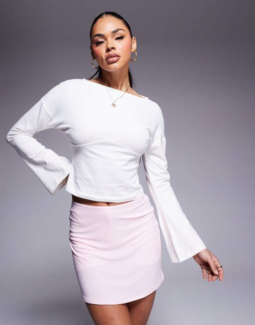 ASOS DESIGN rib boat neck top with underbust detail in ivory