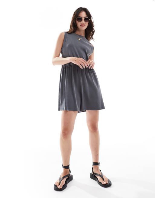 ASOS DESIGN ribbed tank playsuit in washed grey