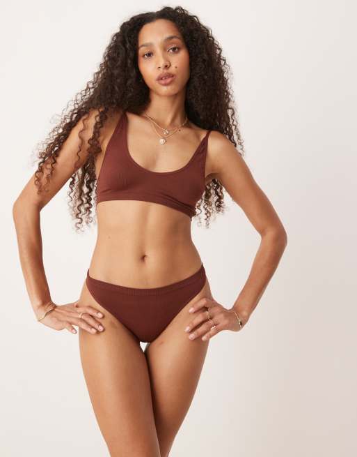ASOS DESIGN ribbed thong in chocolate