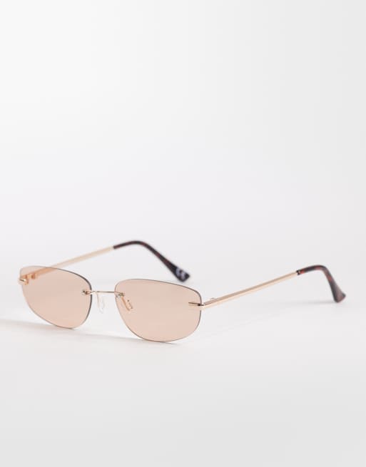 ASOS DESIGN rimless rectangle sunglasses in gold metal with brown lens