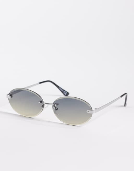 ASOS DESIGN rimless sunglasses in silver metal frame with blue lens