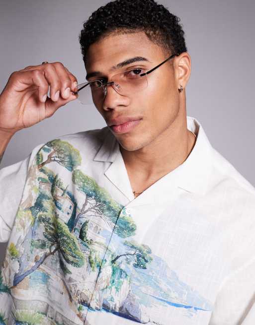ASOS DESIGN rimless sunglasses with pale pink rectangle lenses and metal silver frame
