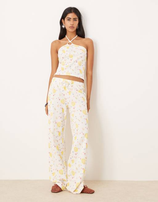 ASOS DESIGN ring detail co-ord in lemon ditsy print - MULTI