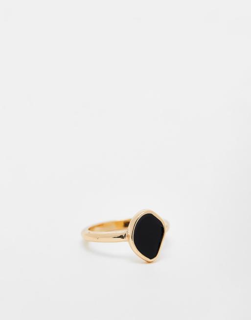ASOS DESIGN ring with black enamel detail in gold tone