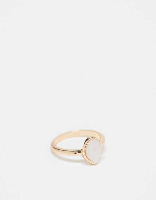 ASOS DESIGN ring with faux pearl enamel detail in gold tone