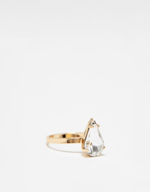 ASOS DESIGN ring with mini teardrop crystal in gold tone