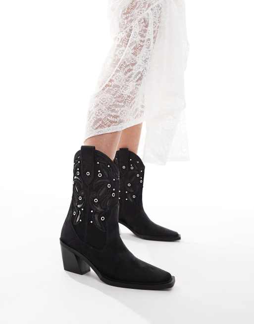 ASOS DESIGN Roan western heeled boots with stones in black